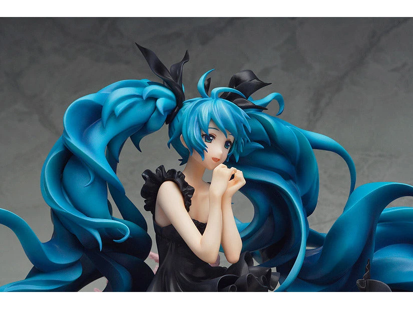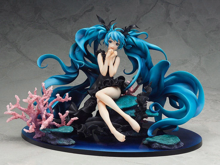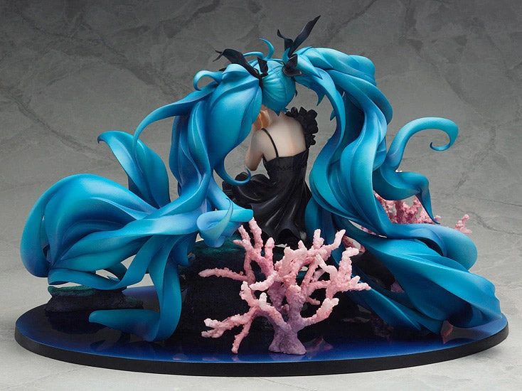 From Yuuyu-P’s popular song with over a million views on Nico Nico Douga, ‘Deep Sea Girl’ comes a rerelease of the popular 1/8th scale Hatsune Miku figure! The figure is based on the beautiful illustration by Haruyo, drawn in commemoration of the song being selected as a part of the Million Saisei & EXIT TUNES PRESENTS vocalodream album. Miku is posed sitting at the bottom of the deep sea, with her beautiful pale skin contrasting with her jet black dress. Her hair and the coral around her gently sway in the ocean current, painting a beautiful underwater scene for fans to enjoy.