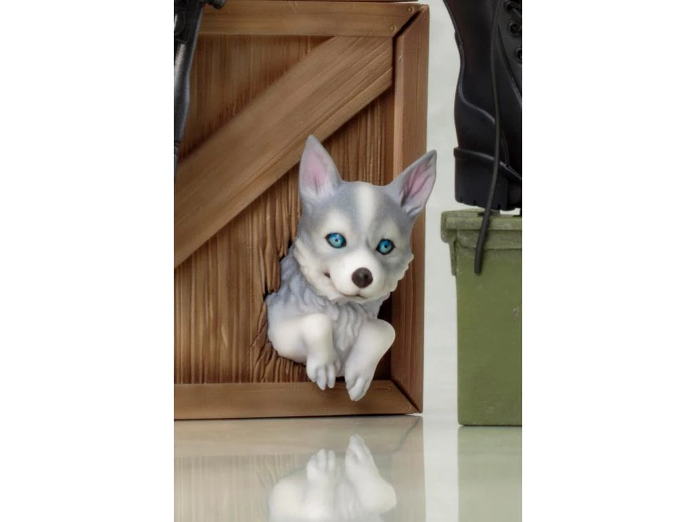 From her clothing to her rifle and the crate beneath her every element of this statue is intricately sculpted and highly detailed. There’s even a wolf pup peeking out from its hiding spot inside the broken crate! Sculpted by Takaboku Busujima (BUSUJIMAX), Sniper Wolf is 7.5 inches tall (1/7 scale) sitting on her crate display base.