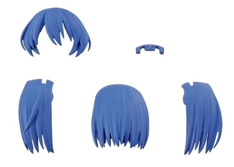 Add to your 30 Minutes Sisters model kit collection with this set of 4 hair style parts. You can customize your other completed kits with a pony tail in navy or red, or a bob cut in brown or blue.
