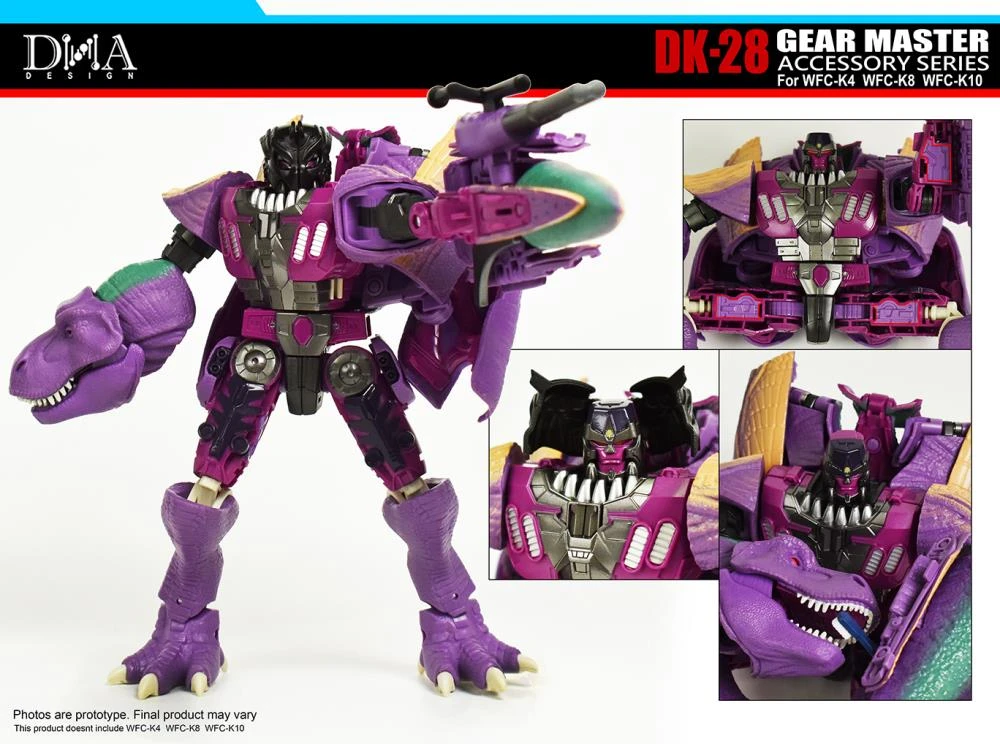The DK-28 Upgrade Kit contains several new parts for the separately sold WFC-K4 Deluxe Cheetor, WFC-K8 Voyager Optimus Primal, and WFC-K10 Leader Megatron. The extra parts do not interfere with the transformation, so there is no need to dismantle the figure.