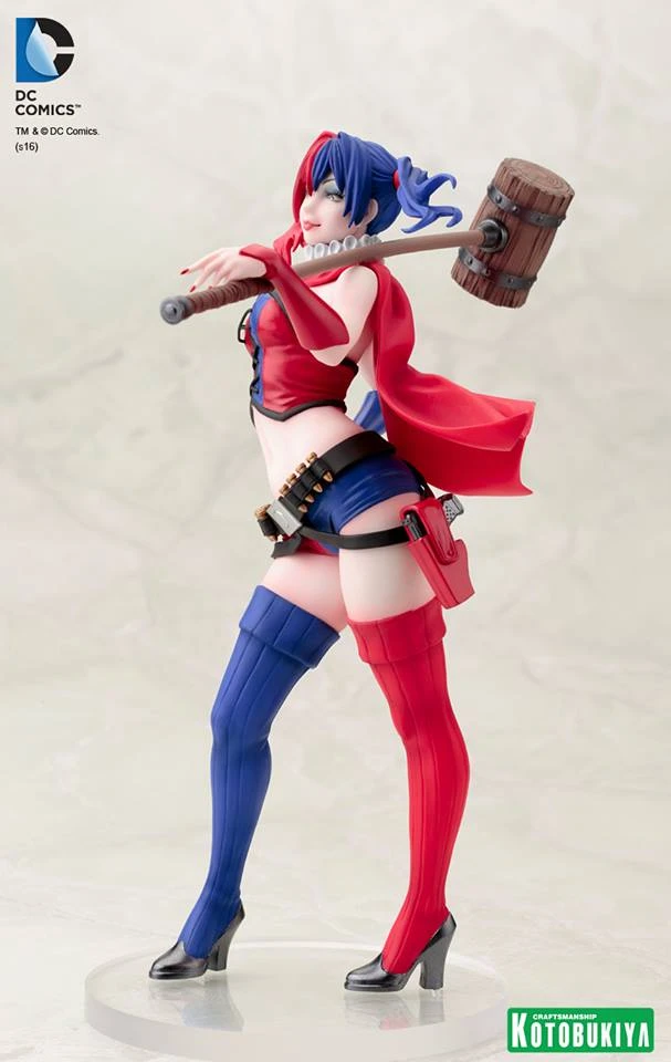 Kotobukiya has just revealed its new DC bishoujo figure, Harley Quinn New 52 Version. This Japanese import figure highlights Harley’s red and blue look as she holds her wooden mallet over her shoulder. Check out the gallery below.